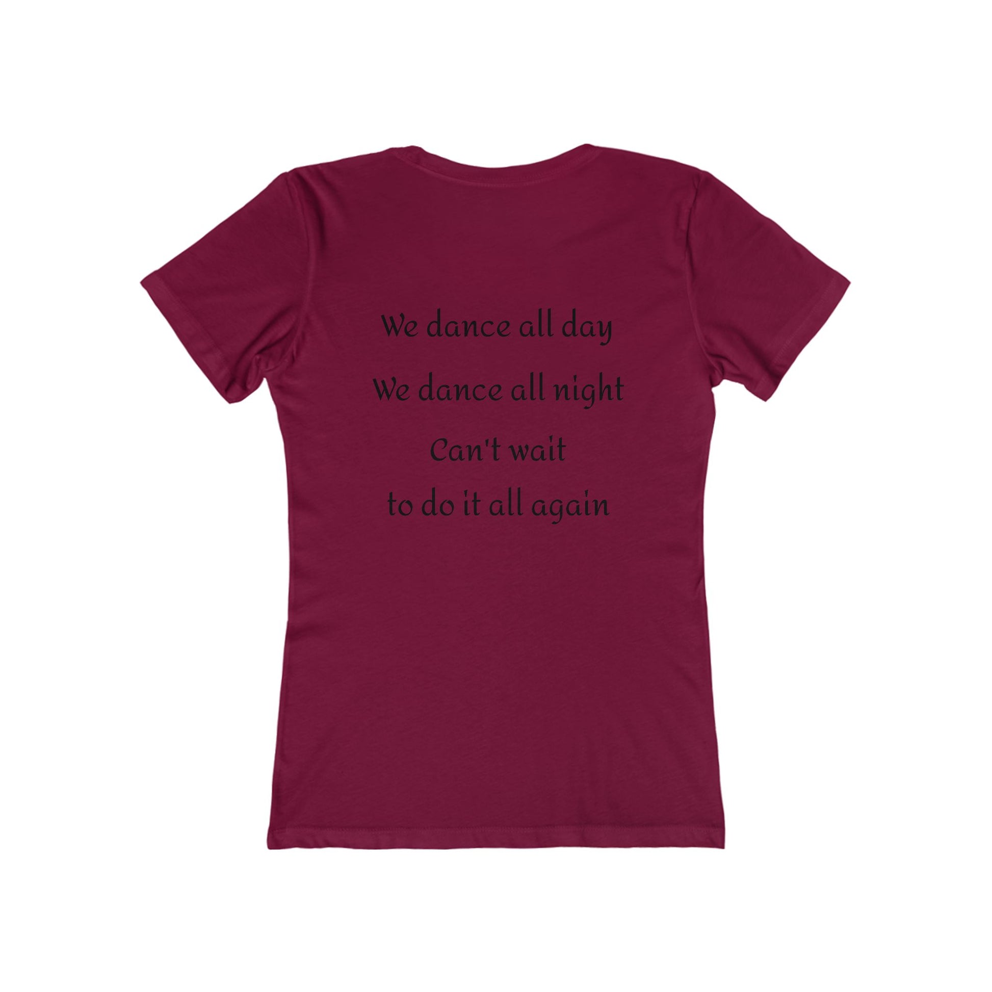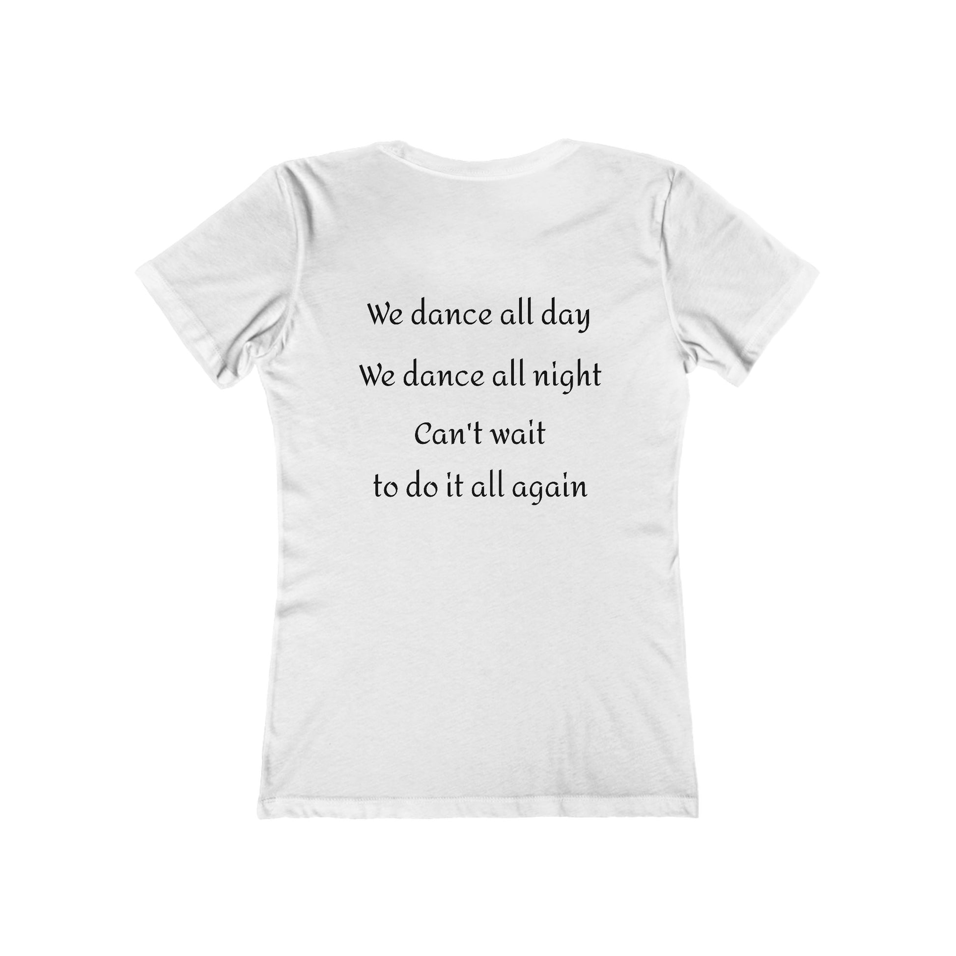 The Boyfriend Ballerina Tee for Women is a stylish and comfortable t-shirt perfect for everyday wear. It has a slim fit with a longer body length, giving it a fashionable look. Made from high-quality fabric, this tee is both strong and smooth, making it ideal for printing. The ribbed knit collar and shoulder tape provide structural support and stability, while the tear away label adds convenience. This tee runs smaller than usual, so consider sizing up for the perfect fit. Ideal for women looking for a trendy and versatile top.
