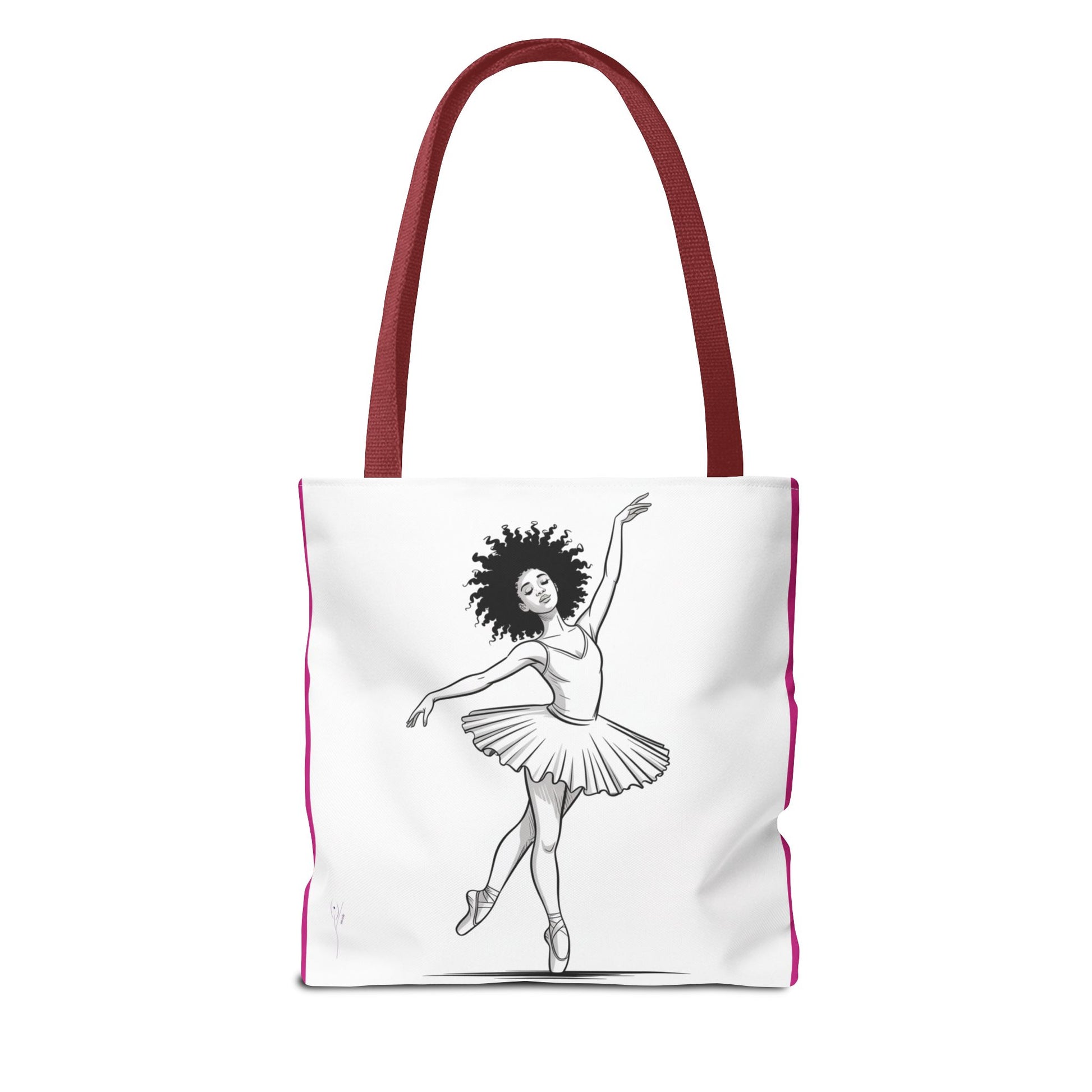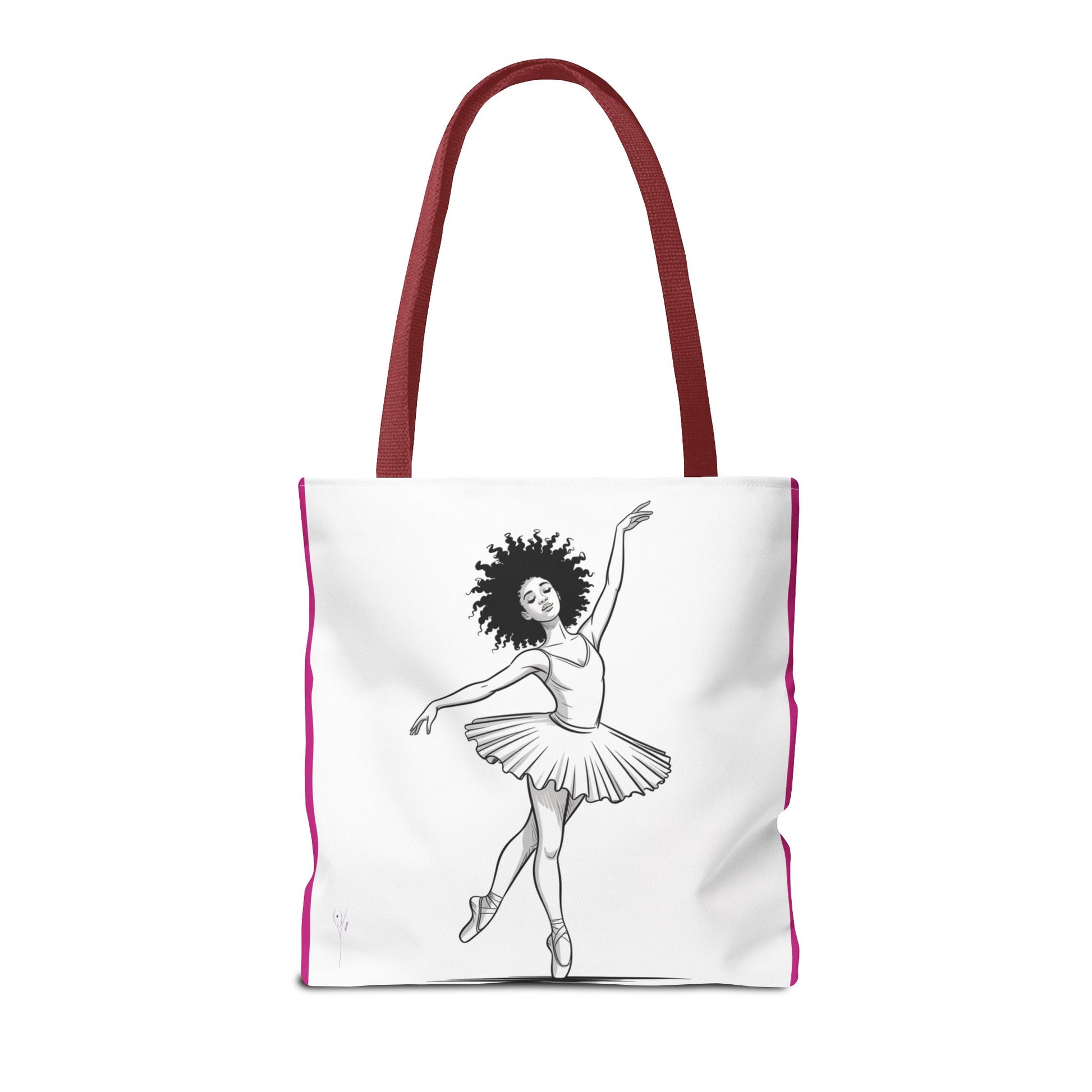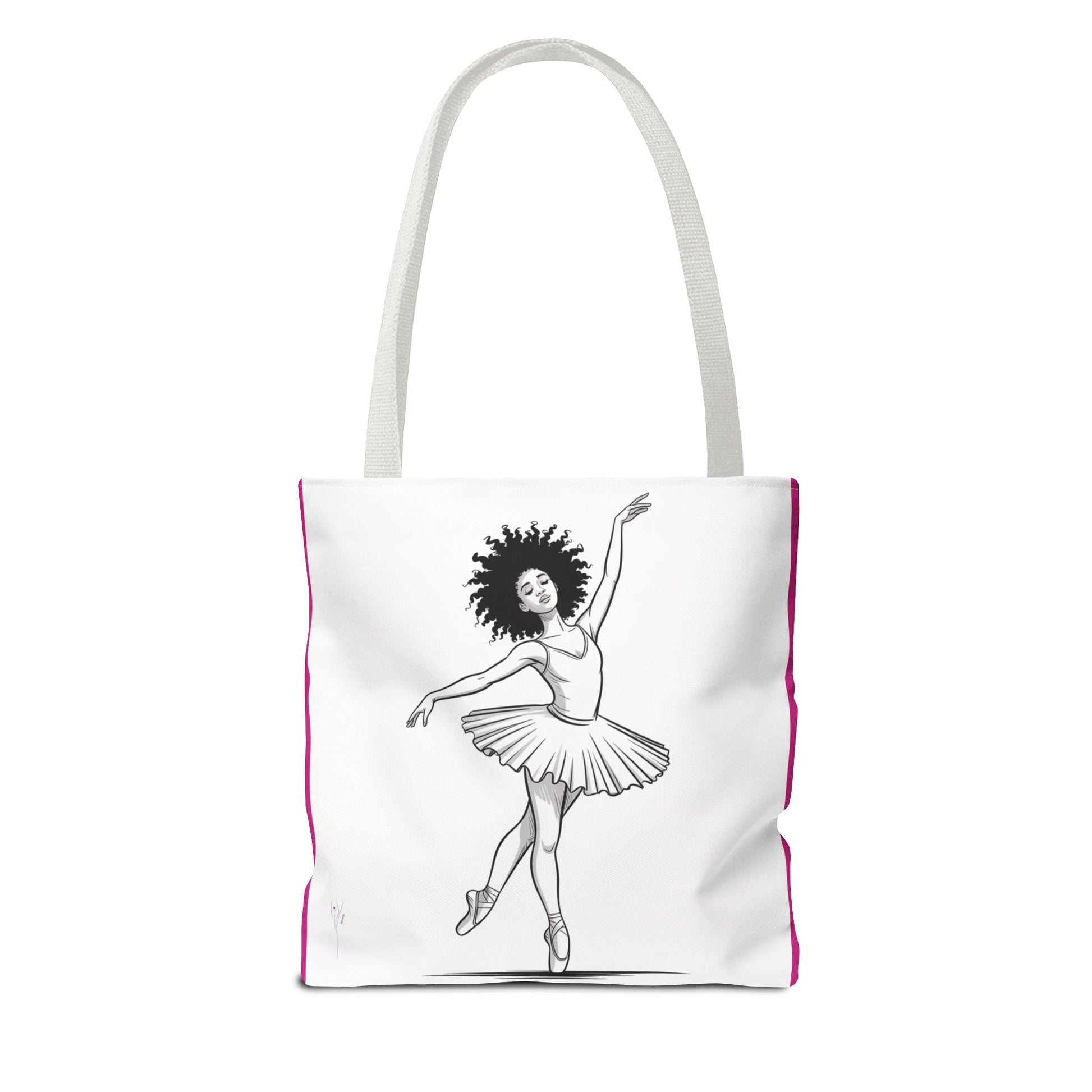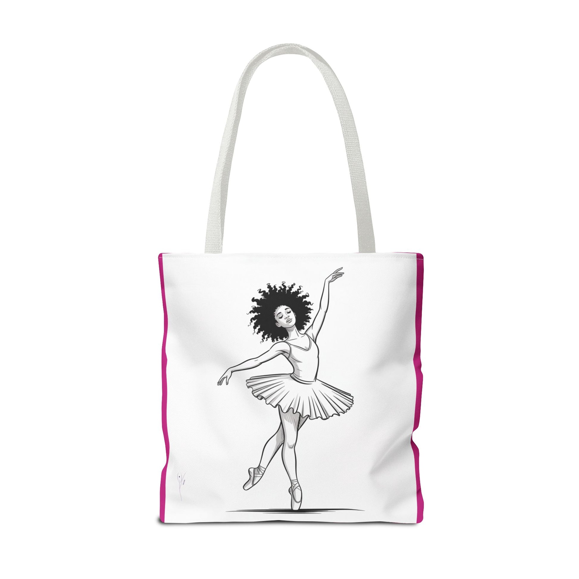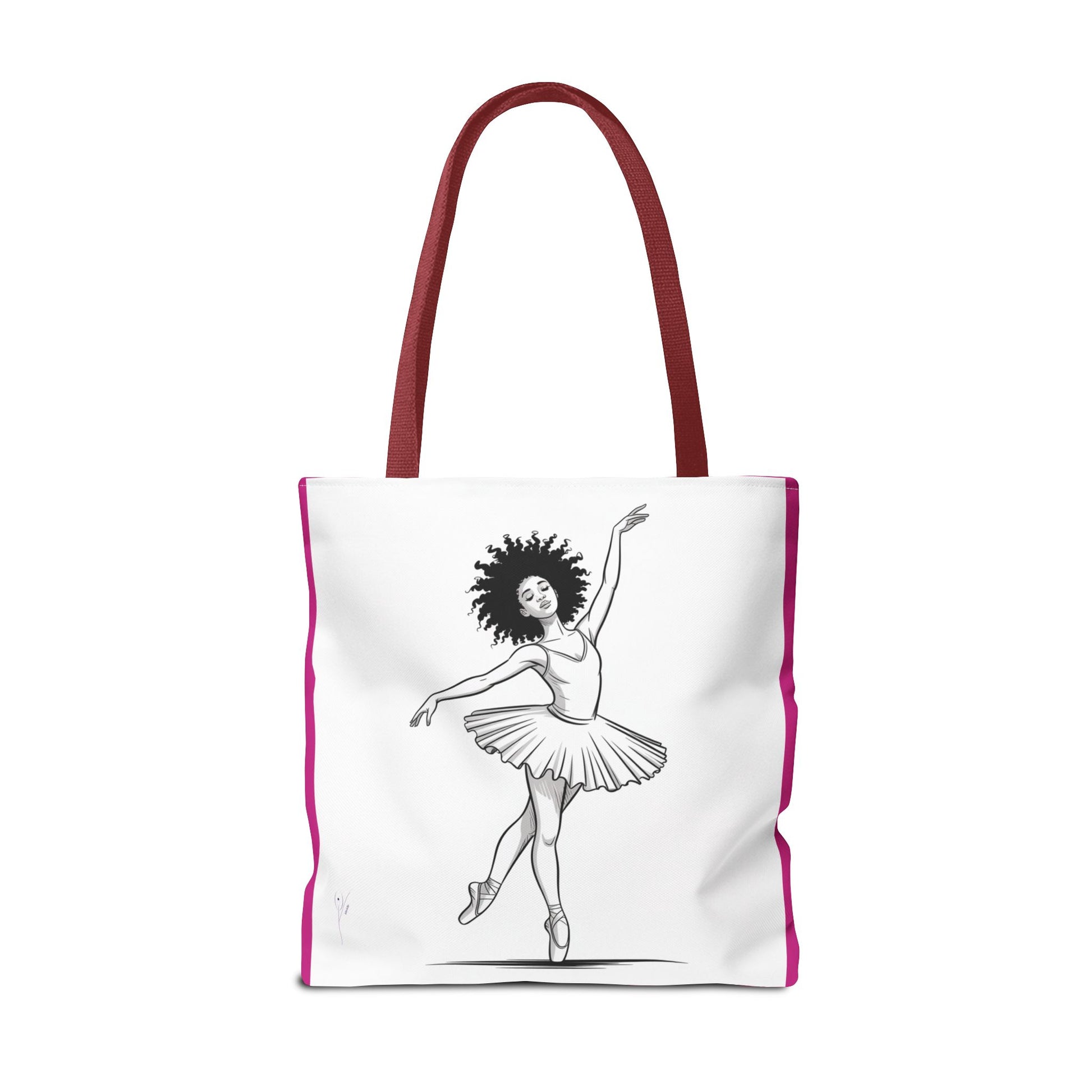 A Ballet Tote Bag perfect for the ballet enthusiast. This tote bag exudes grace and elegance, making it a great addition to a dancer's wardrobe. Ideal for carrying dance shoes, water bottle, and other essentials to dance practice or performances. Perfect for ballet dancers, dance students, and ballet lovers. Great for gifting during dance recitals, birthdays, and holidays like World Ballet Day.