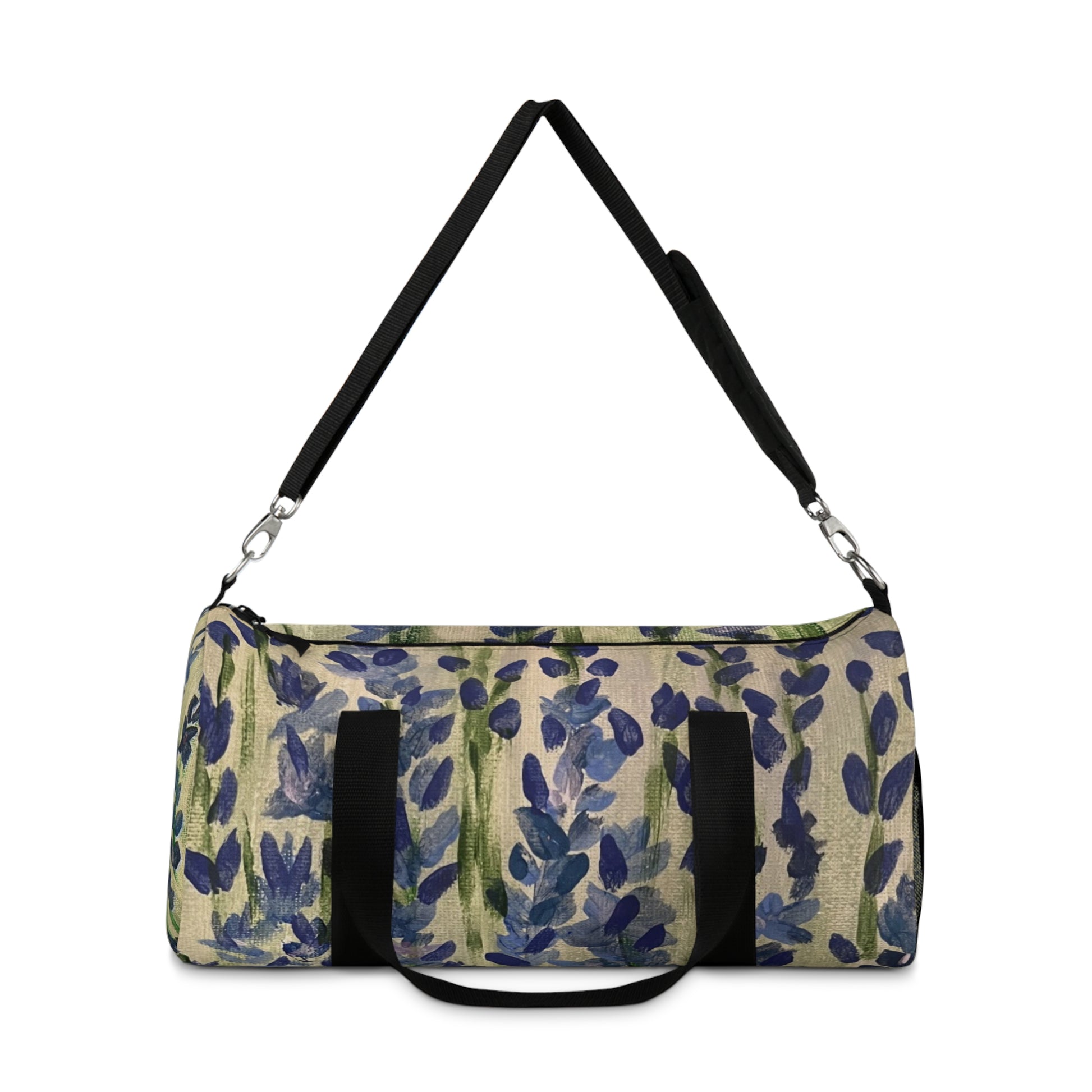 This Duffle Bag features a beautiful design of bluebonnets, giving off a fresh and vibrant vibe. Perfect for nature lovers and outdoor enthusiasts, this bag can be a great addition to your travel gear. Ideal for spring and summer travels, camping trips, and hiking adventures.