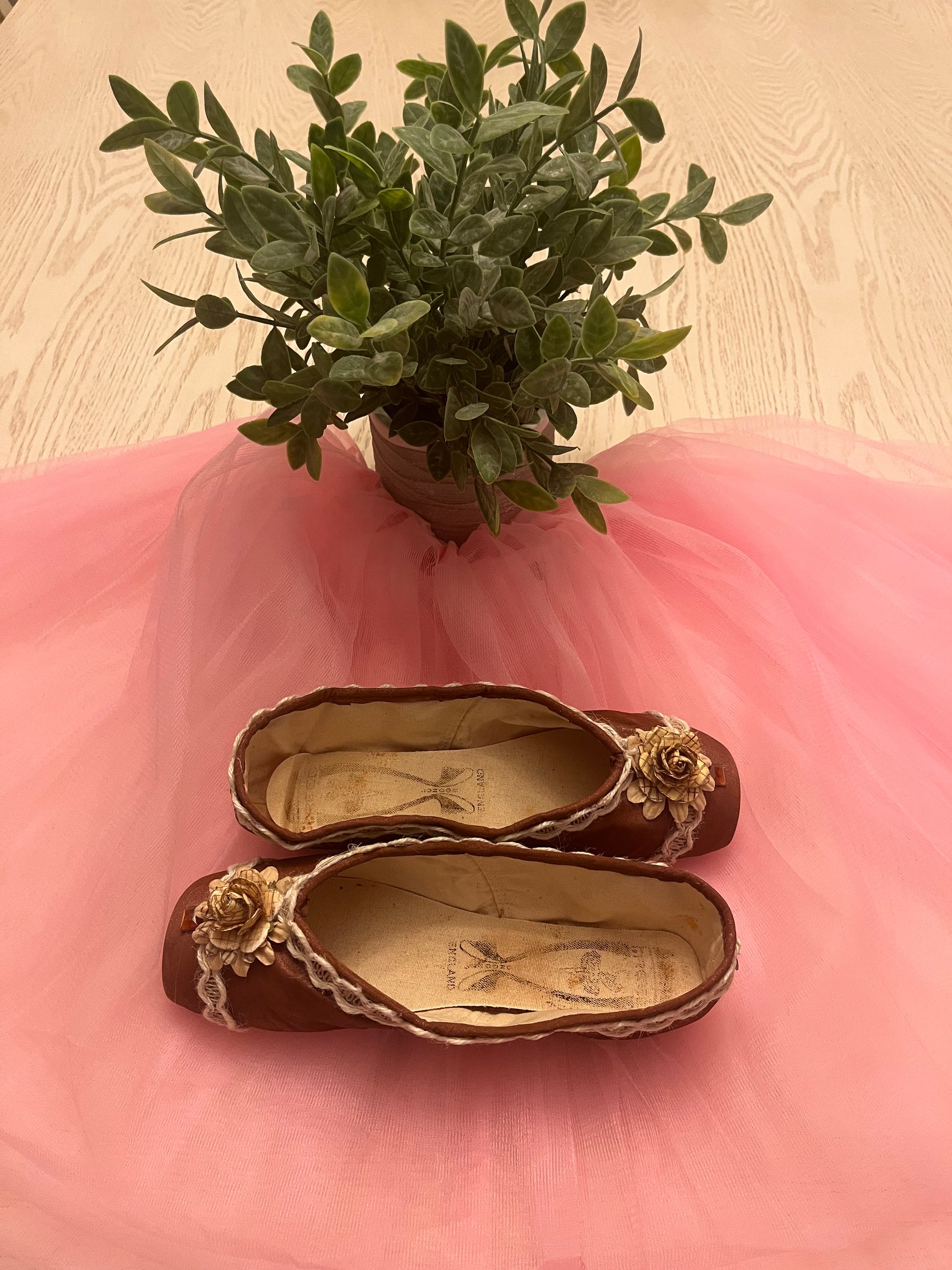 ♦ Authentic ballet point shoes, hand-decorated by artist Patricia Johnson-Vierra
