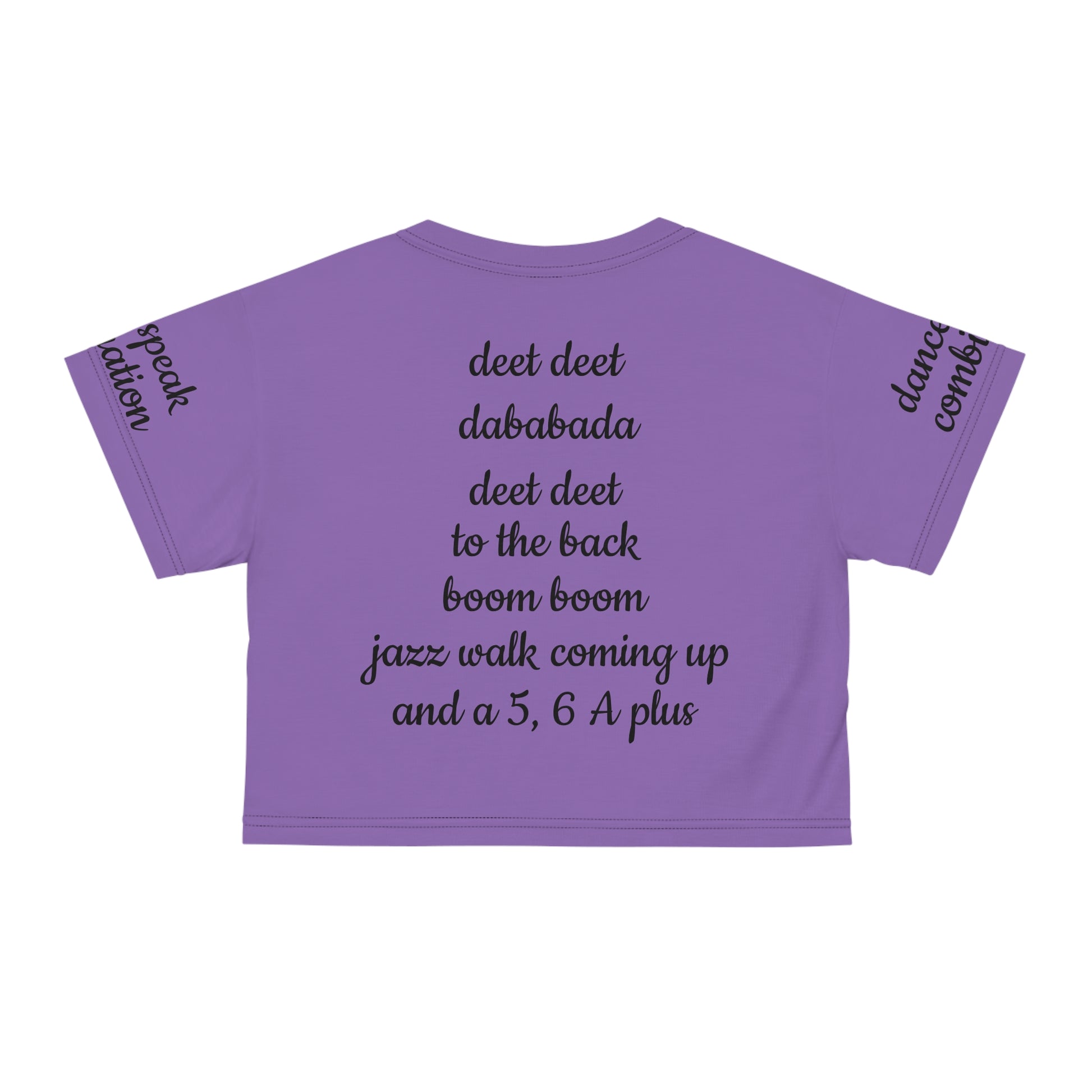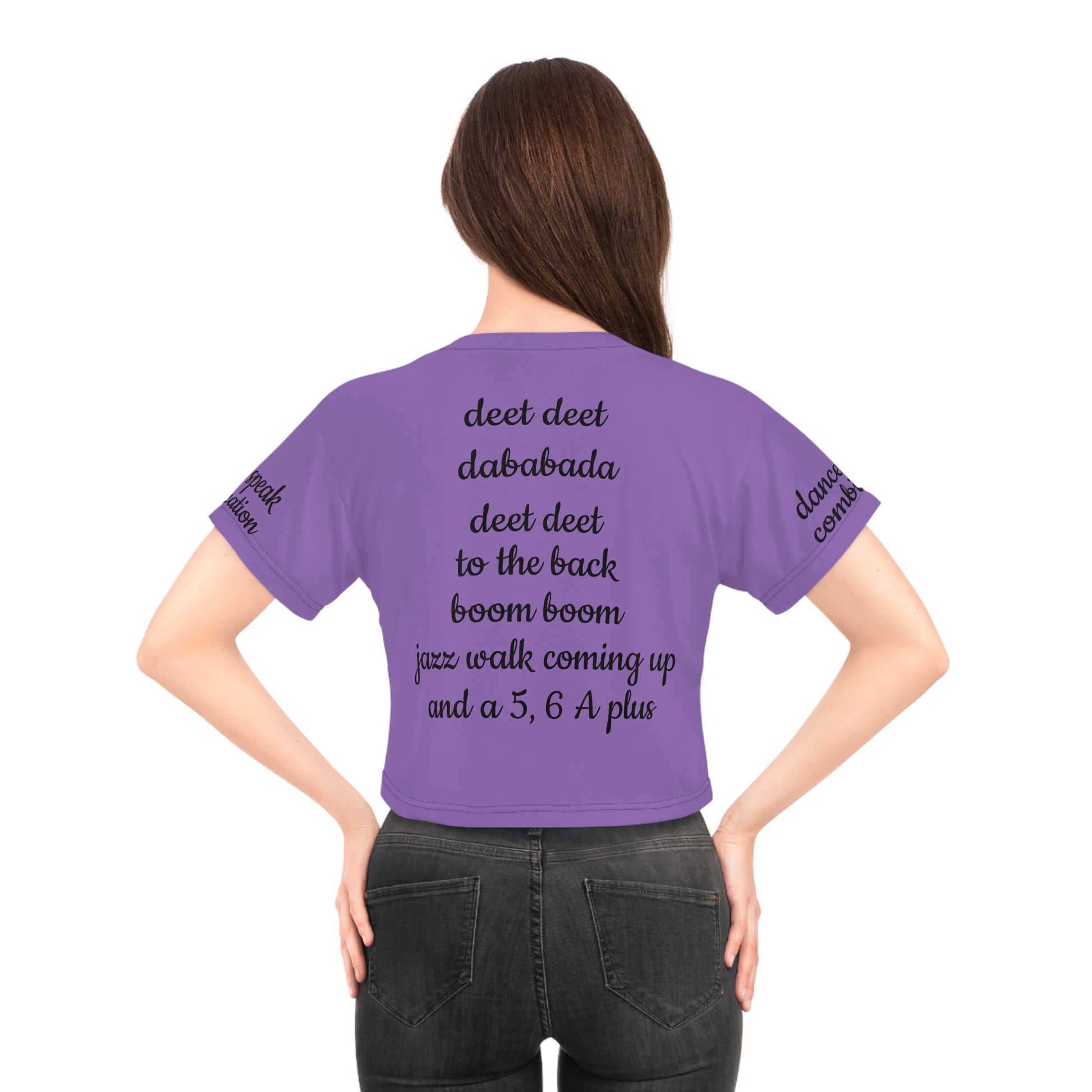 Elevate your casual wardrobe with this stylish Crop Tee. Perfect for dance enthusiasts or anyone who embraces creativity, this tee offers a vibrant expression of your personality. The all-over print features fun and motivational dance phrases that energize your day, making it ideal for dance classes, rehearsals, or simply hanging out with friends. This fun and flirty piece is not only a great choice for your everyday activities but also makes a thoughtful gift for birthdays, dance recitals, or special celebrations. Embrace your passion and showcase your unique flair with this fashionable crop tee!
