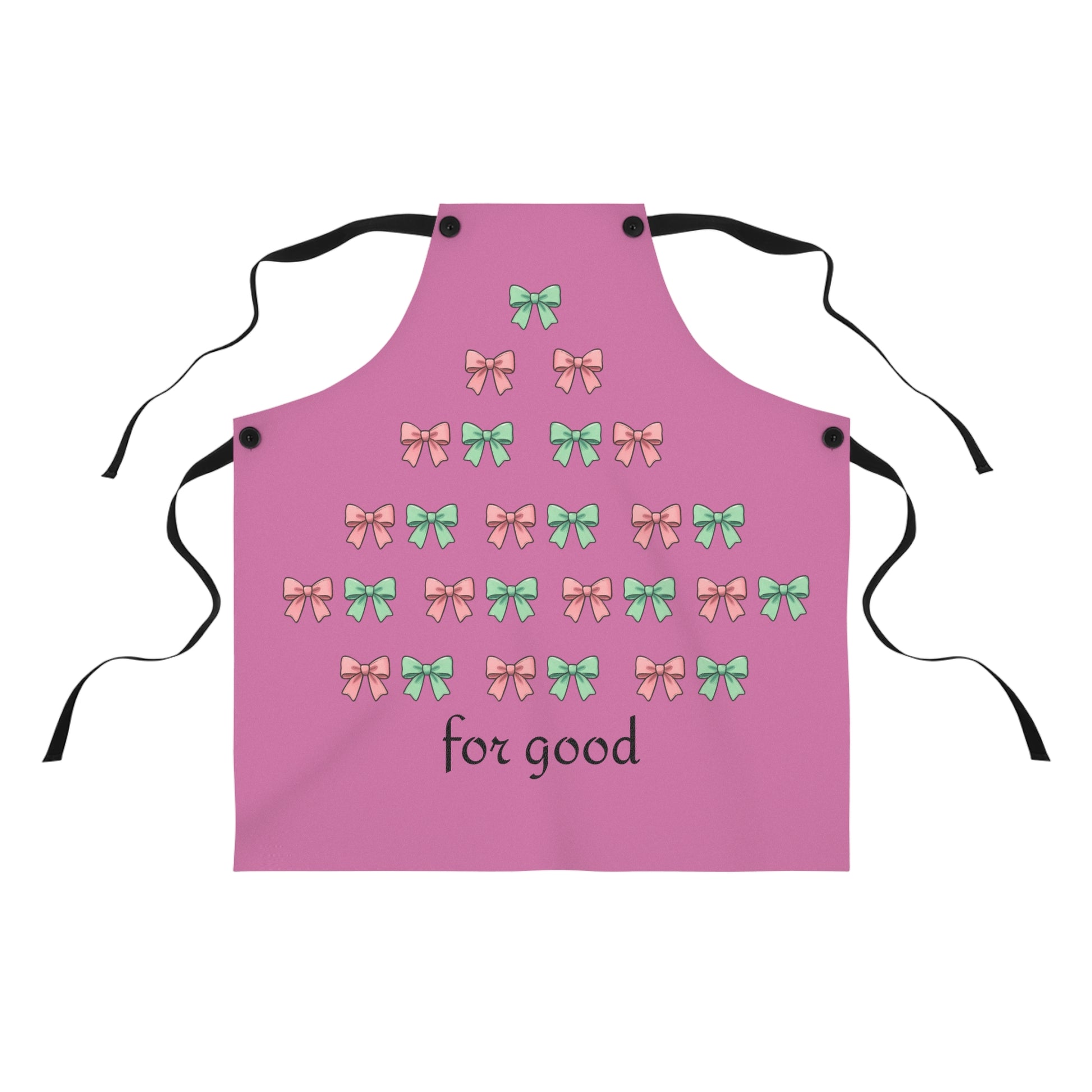 Pink Bow Pattern Apron — "for good" Kitchen Apron, Cute Pastel Bows Gift for Bakers & Moms. This apron gives a fun and cheerful vibe, perfect for baking or cooking in the kitchen. Ideal gift for bakers and moms, suitable for Mother's Day, birthdays, and baking enthusiasts.