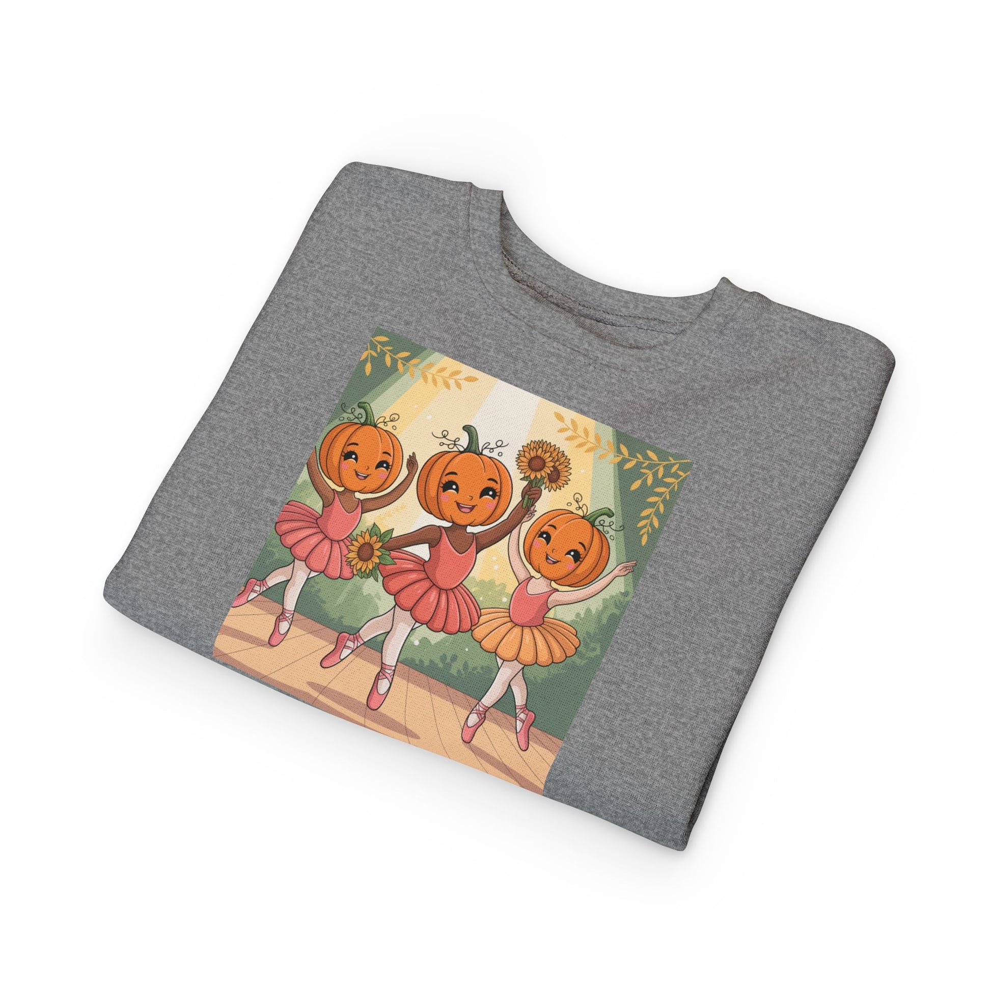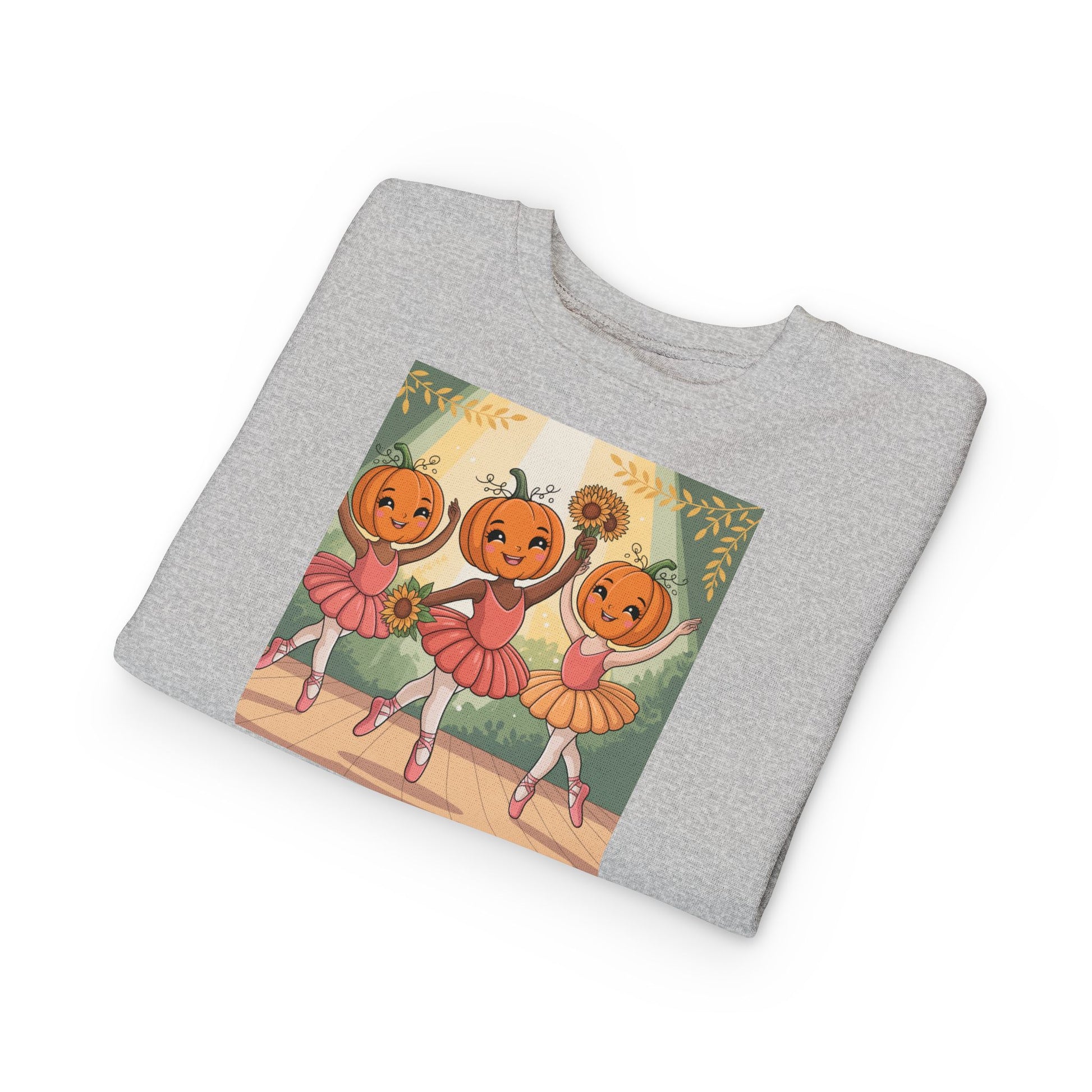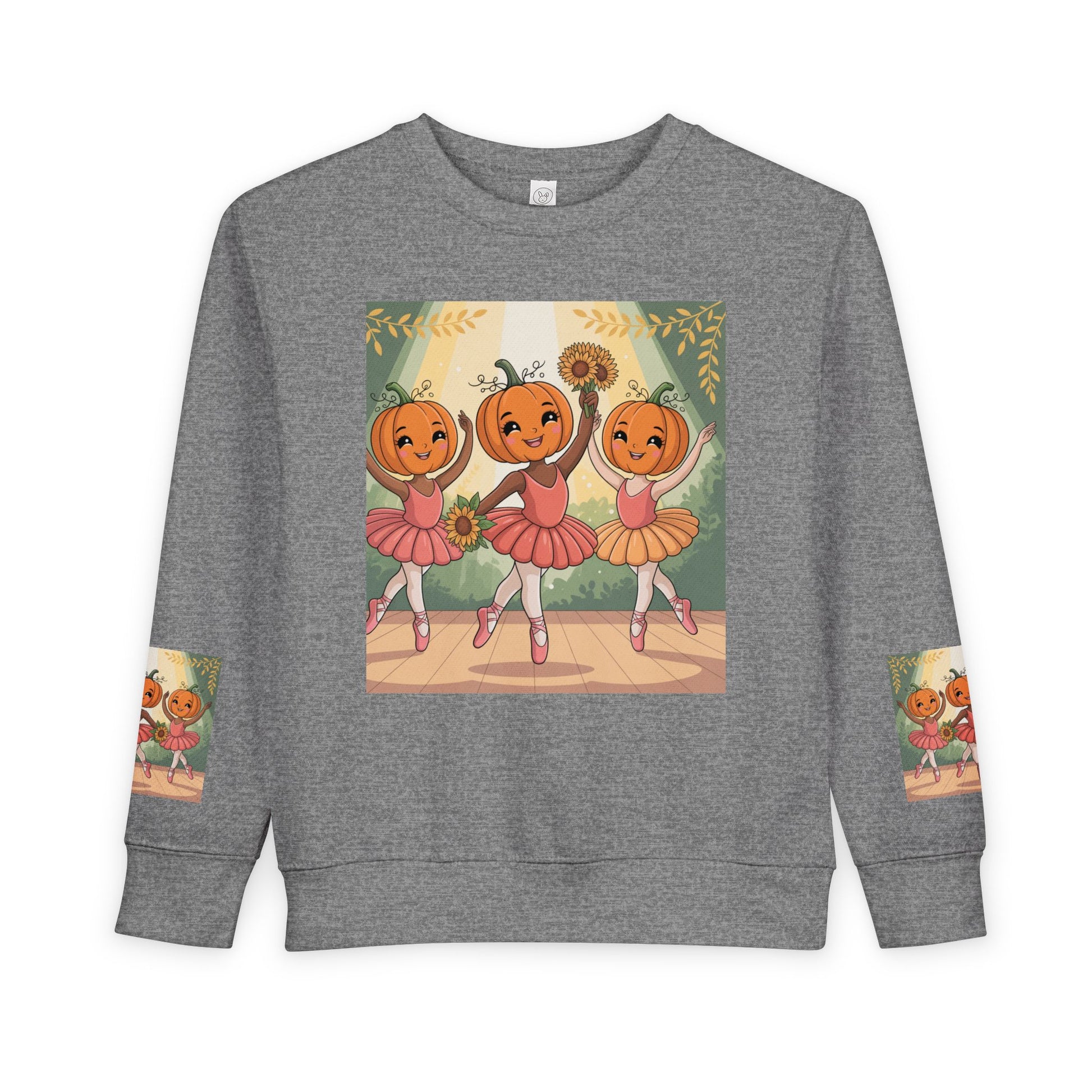 This Pumpkin Ballet Toddler Sweatshirt is perfect for the autumn season, offering a cute and cozy option for kids. Ideal for Halloween costume parties or just for everyday fall fashion. Made with total comfort in mind and suitable for children, this sweatshirt is a must-have for the little ones during the holiday season.