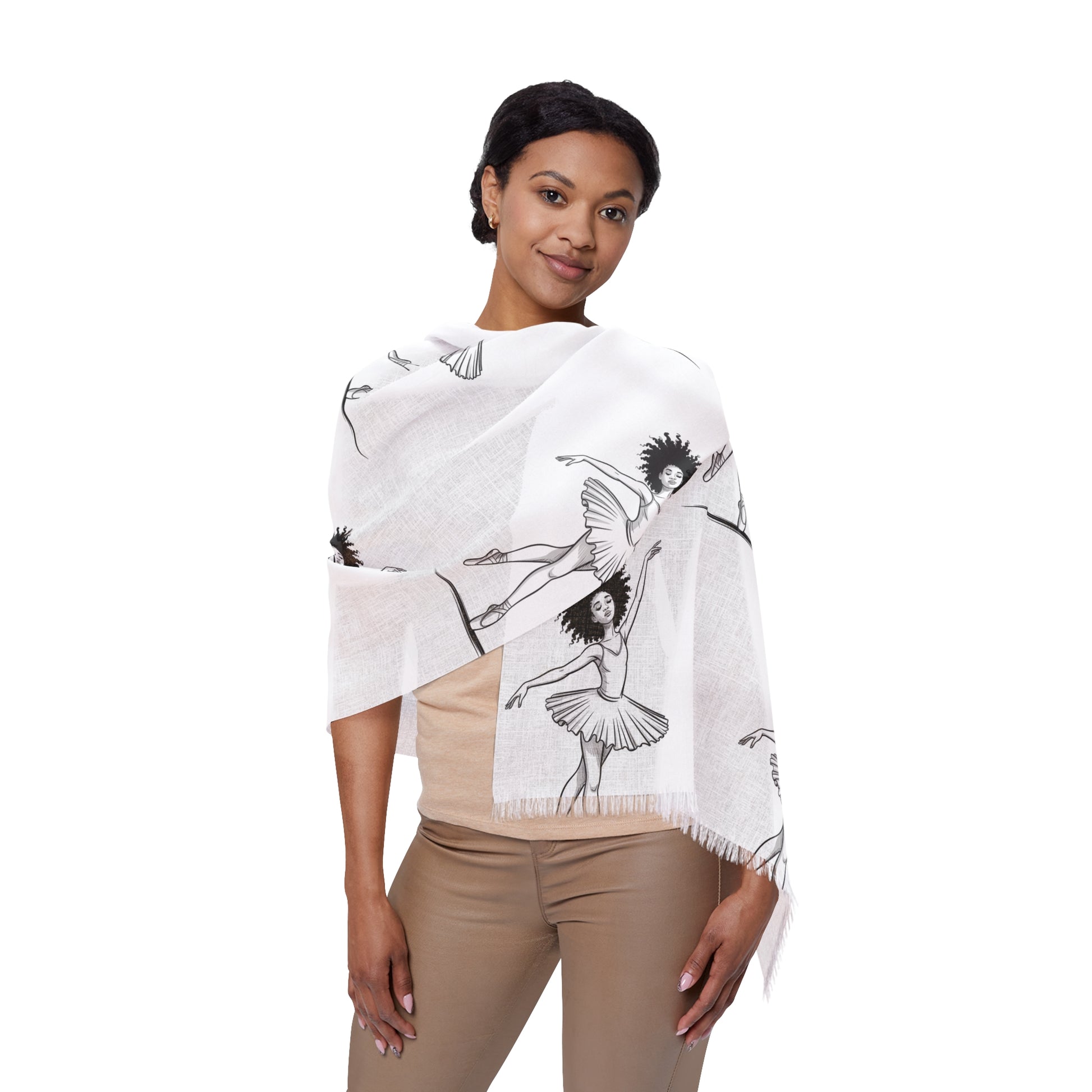 This ballerina girl scarf exudes elegance and grace, perfect for adding a touch of charm to any outfit. Ideal for those who appreciate artistry and beauty in their accessories. Relevant for ballet enthusiasts, fashionistas, and those looking to elevate their style for special occasions like weddings, parties, and performances.