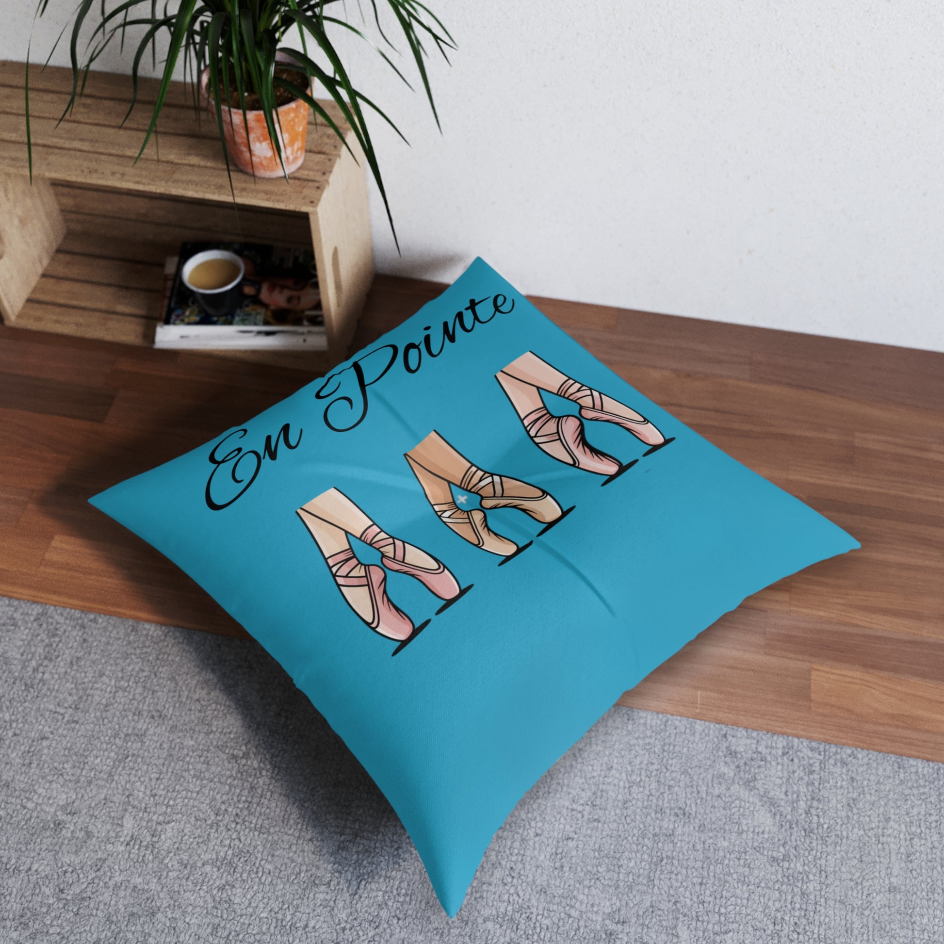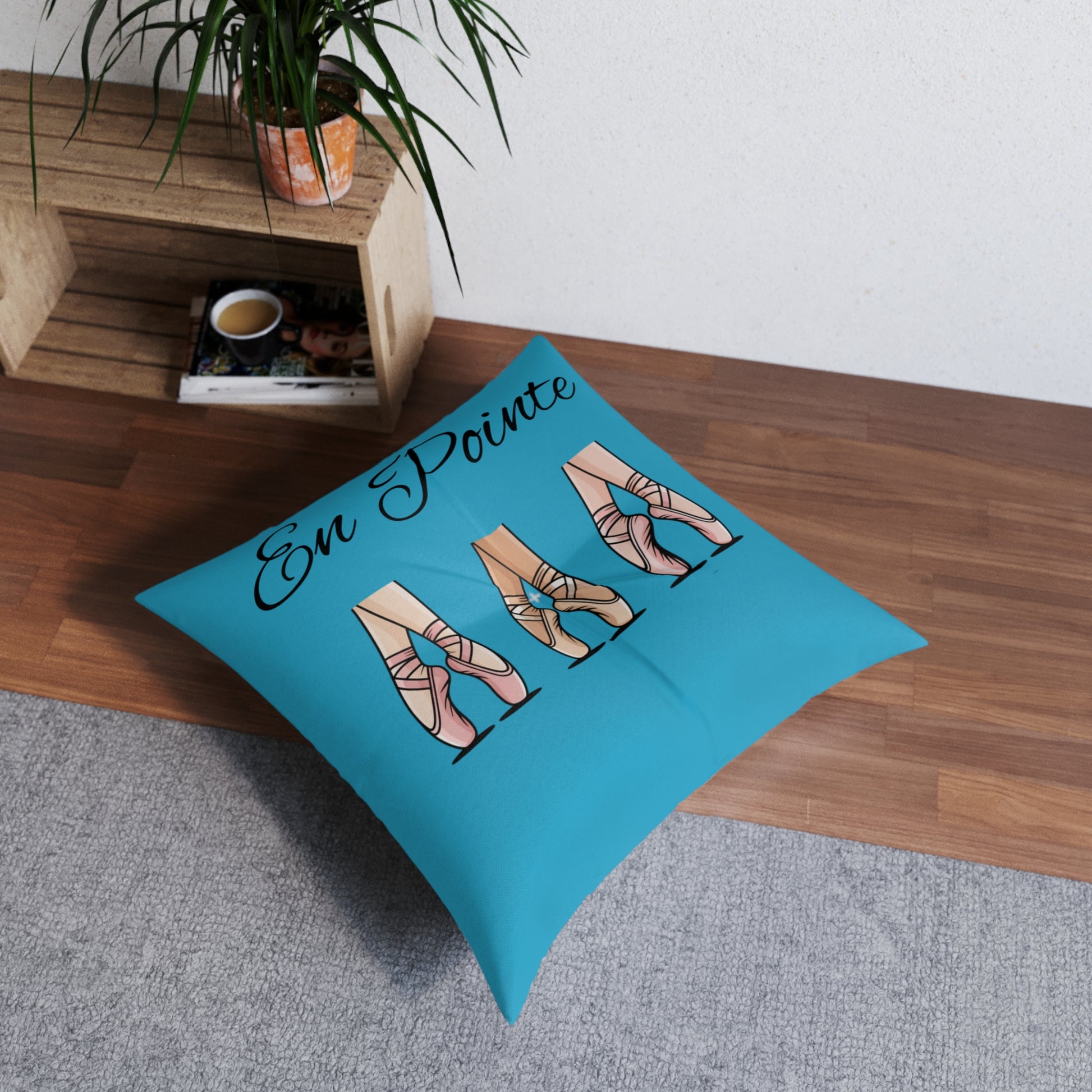 Ballet-inspired tufted floor pillow perfect for dance studio decor or as a gift for dancers and ballet lovers. This decorative cushion adds a touch of elegance and style to any room.